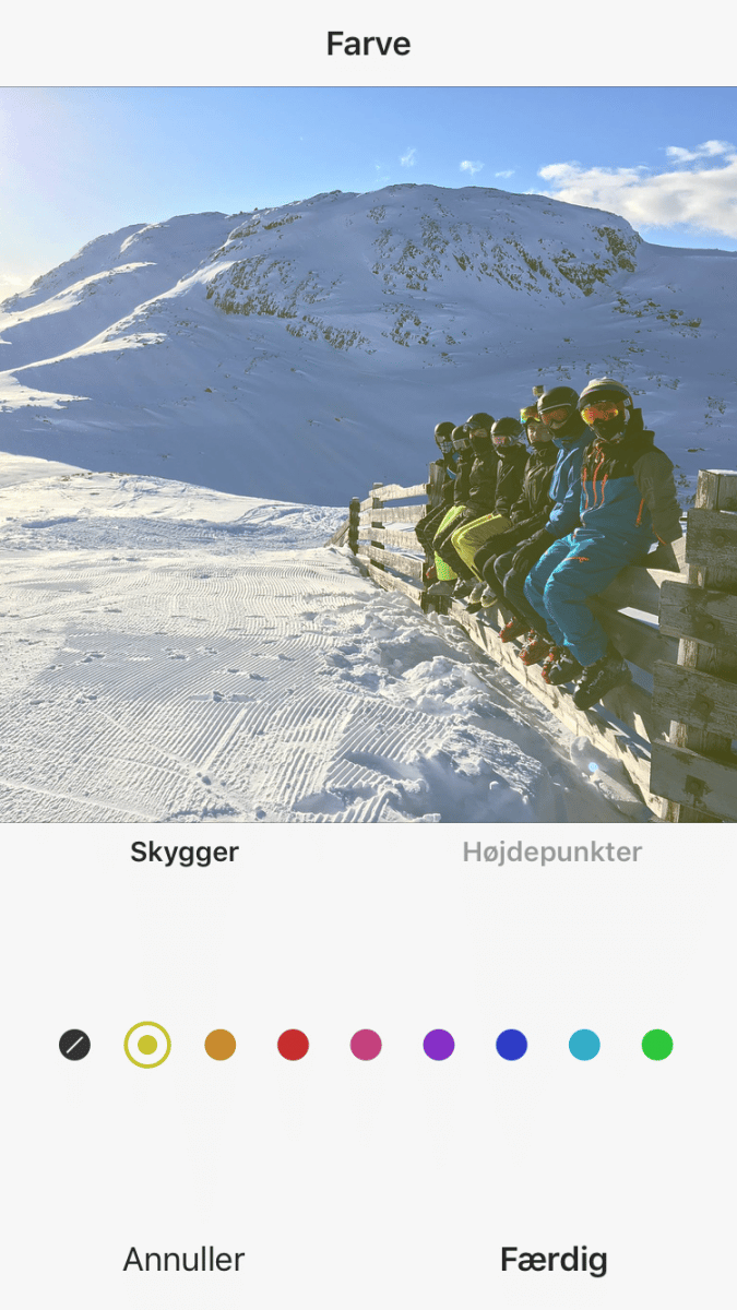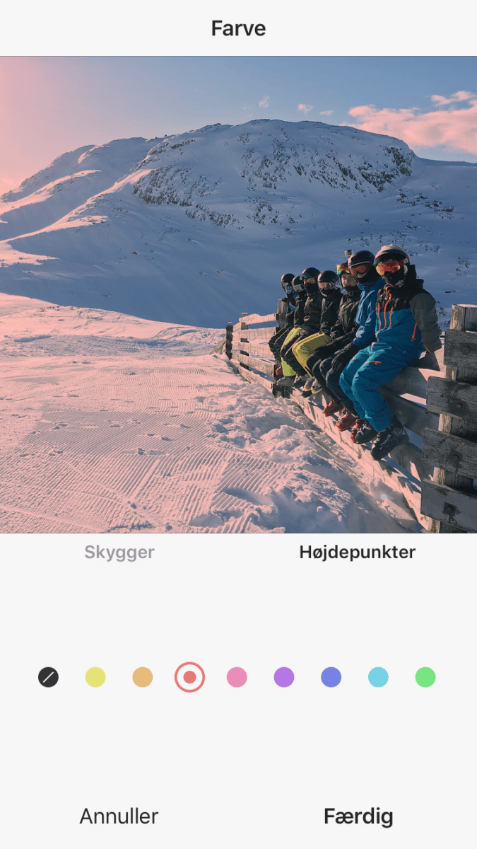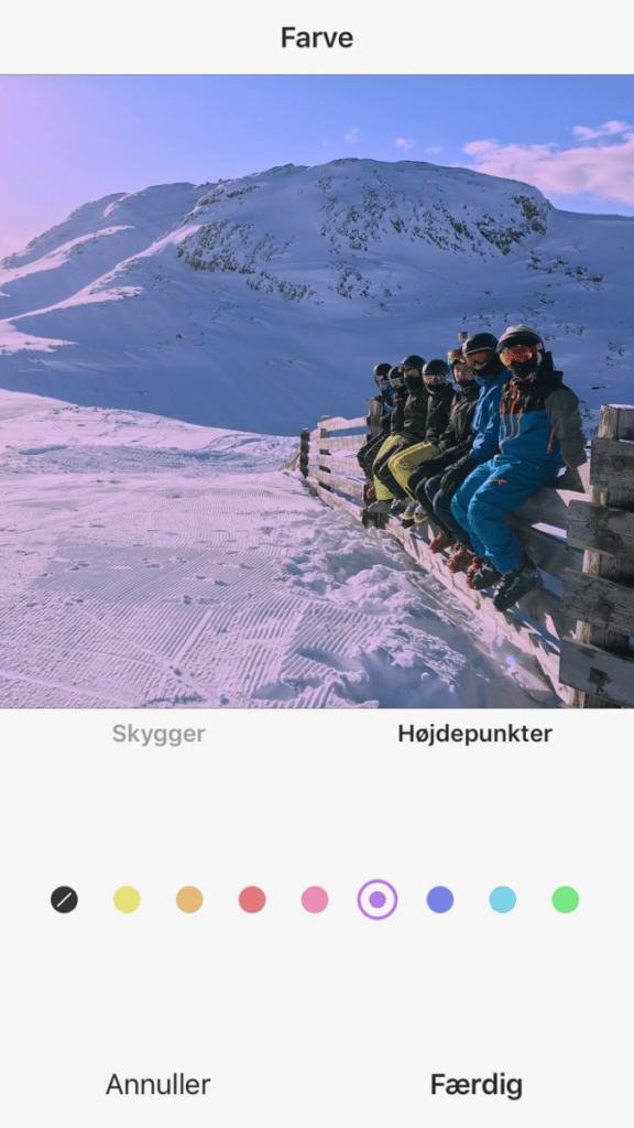 Farvefilter er et kunstig lag af farve, som bliver lagt på billedet efter det er taget.