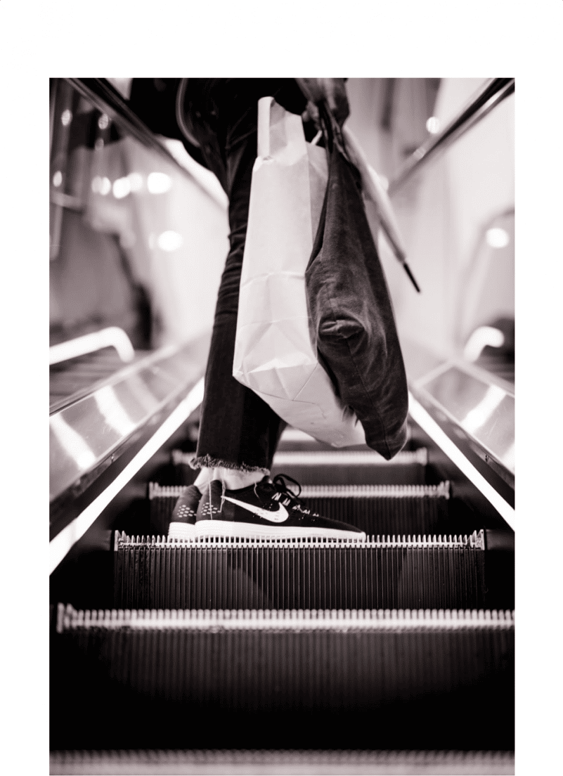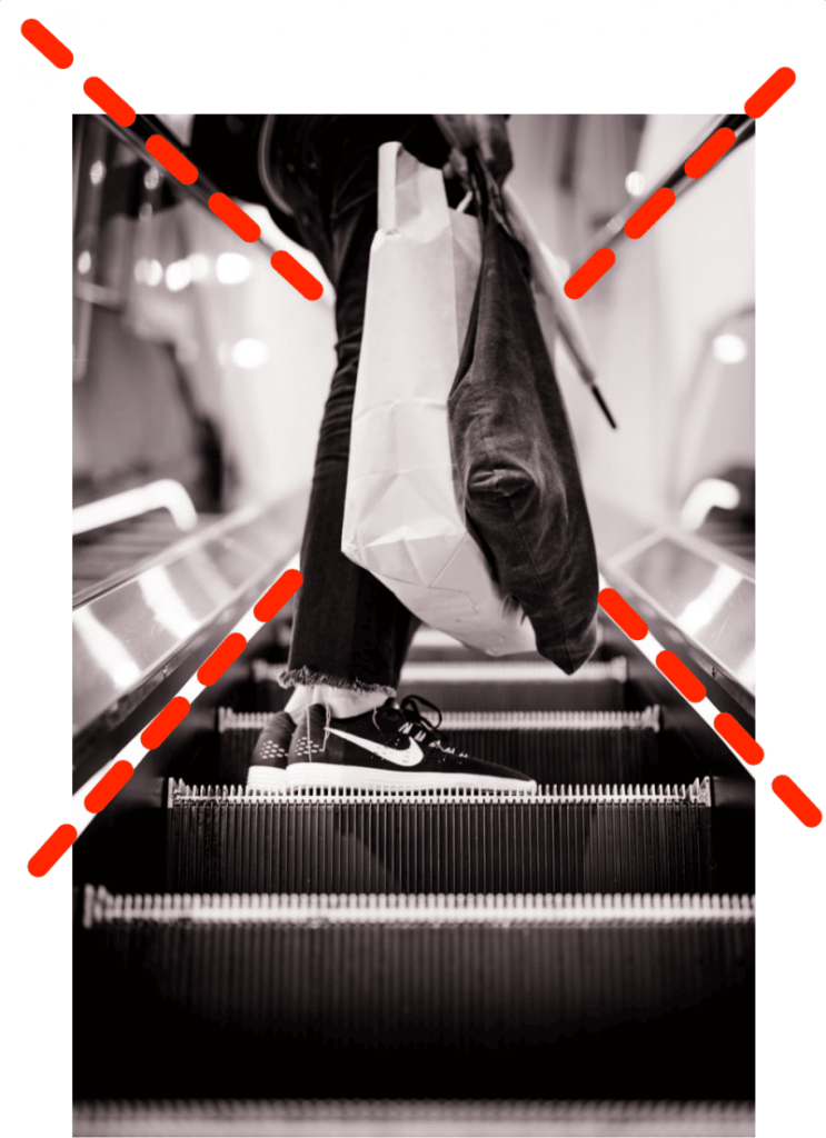 En synlig linje kan fx være en horisont, en vej, et bjerg eller som her en rulletrappe: