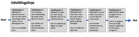 Her er et eksempel på en personudviklingslinje fra Historien Om Rødhætte.